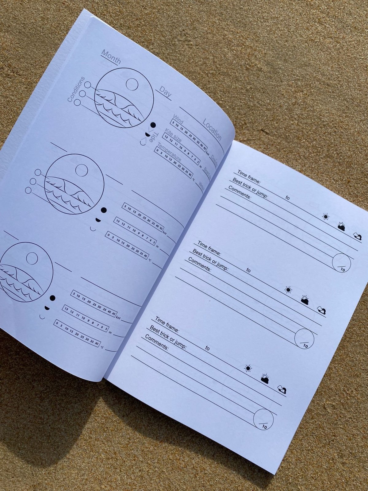 Con el diario, tienes un sitio cómodo donde puedes tomar notas de los nudos, la dirección del viento, las condiciones del mar, el equipo que utilizas y la información necesaria para mejorar la toma de decisiones al llegar a cada spot, o cuando estés explorando nuevos lugares.